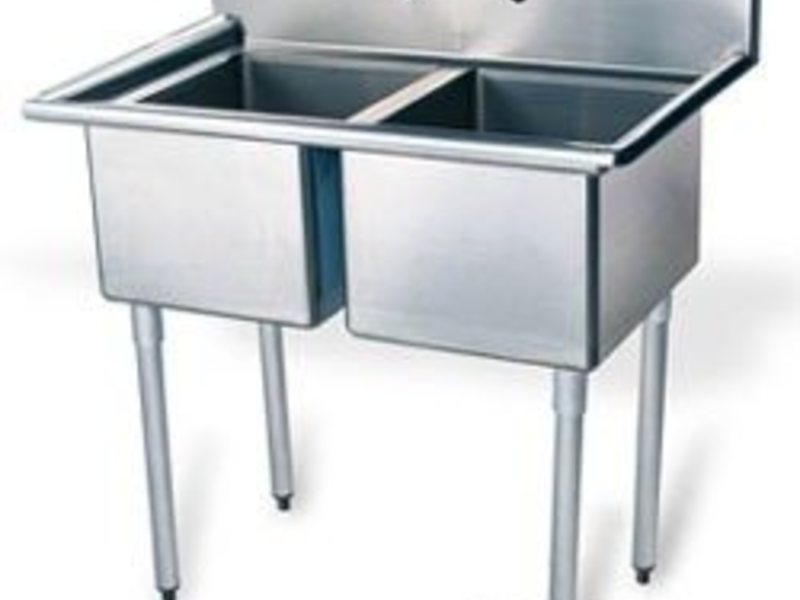 Моечная ванна двухгнездная, размеры гнезда 457 х 457 х 279 мм, задний борт с 2 отверстиями под настенный смеситель, регулируемые по высоте ножки, материал корпуса - нерж. сталь